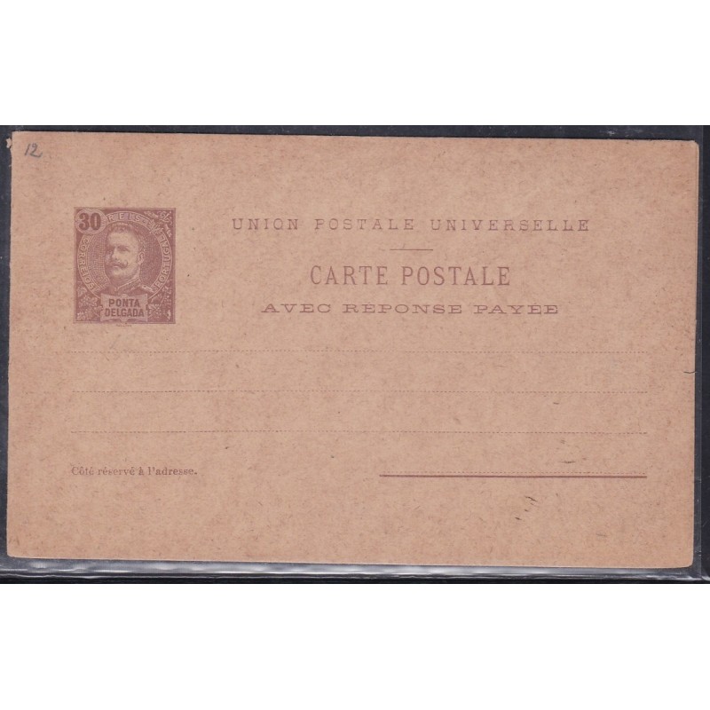 Inteiros Postais nº 12 - Com carimbo de Ponta Delgada.