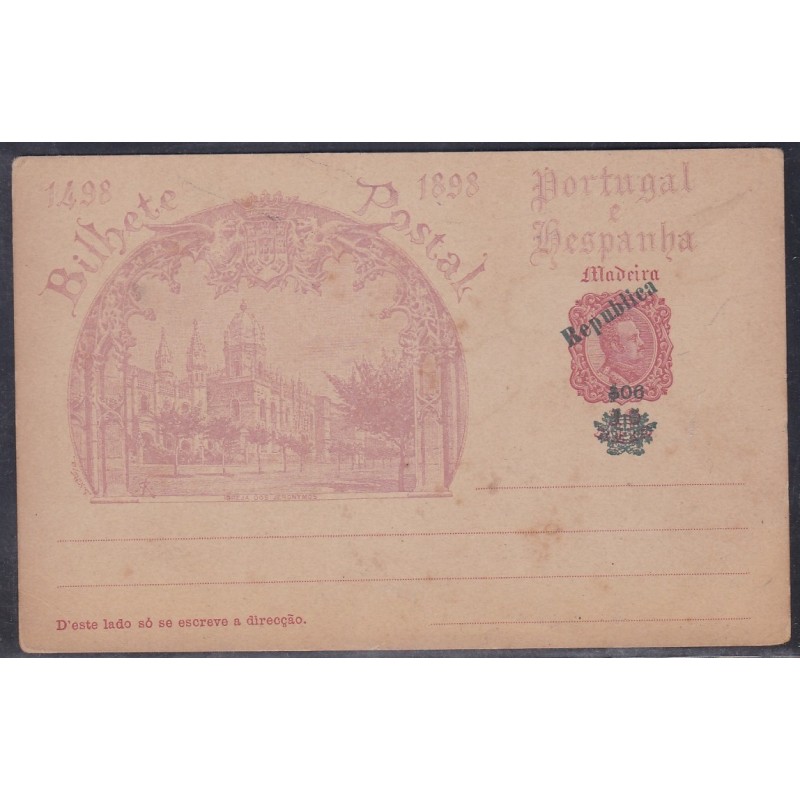 Inteiro Postal nº65B - $06s/10 reis Rosa Carmim - Sobre Bilhete Postal da Madeira