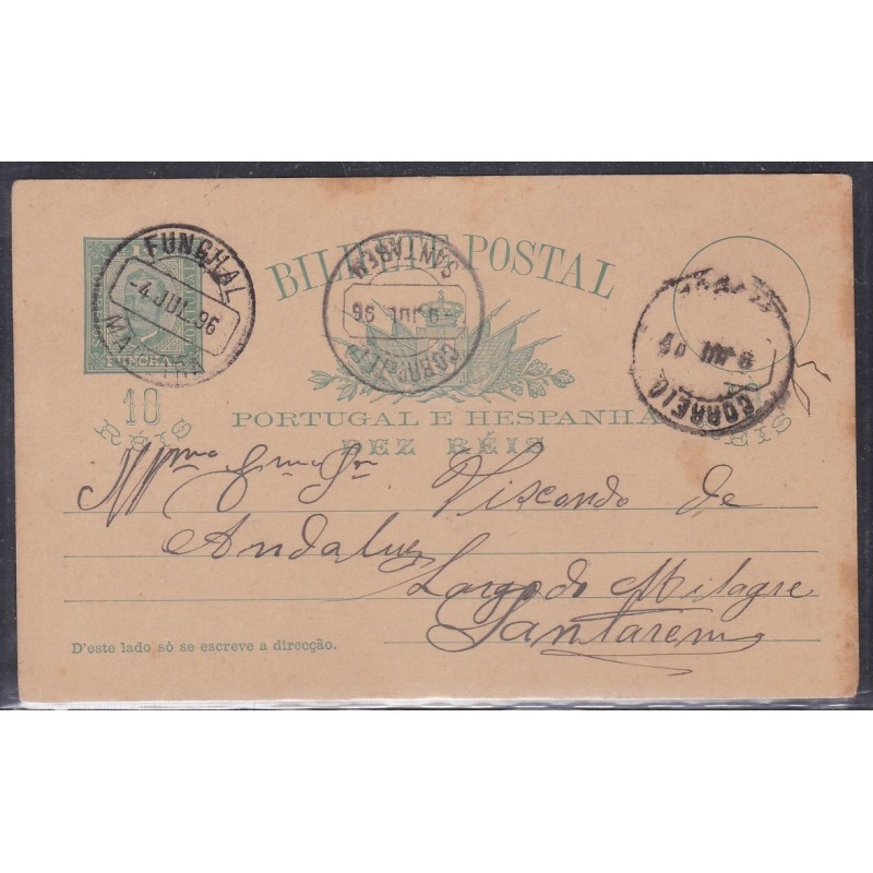 Inteiros Postais nº1 - Camurça escura. Circulado do Funchal para Santarém.