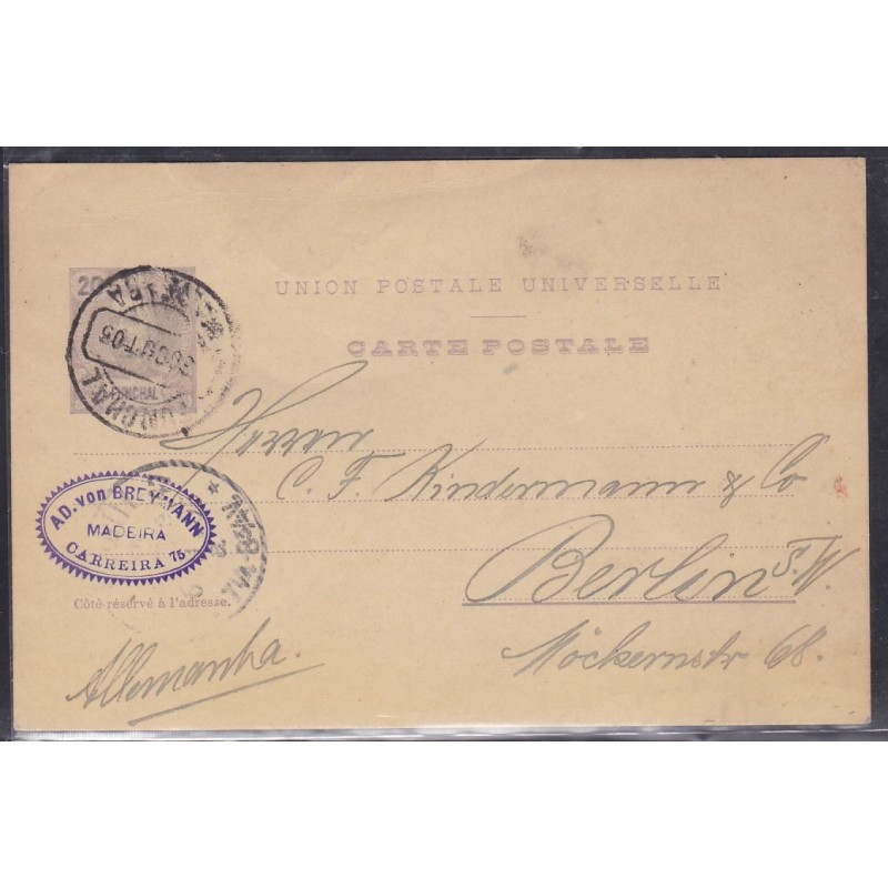 Inteiros Postais nº8 - Camurça escura. Circulado do Funchal para Berlim Alemanha