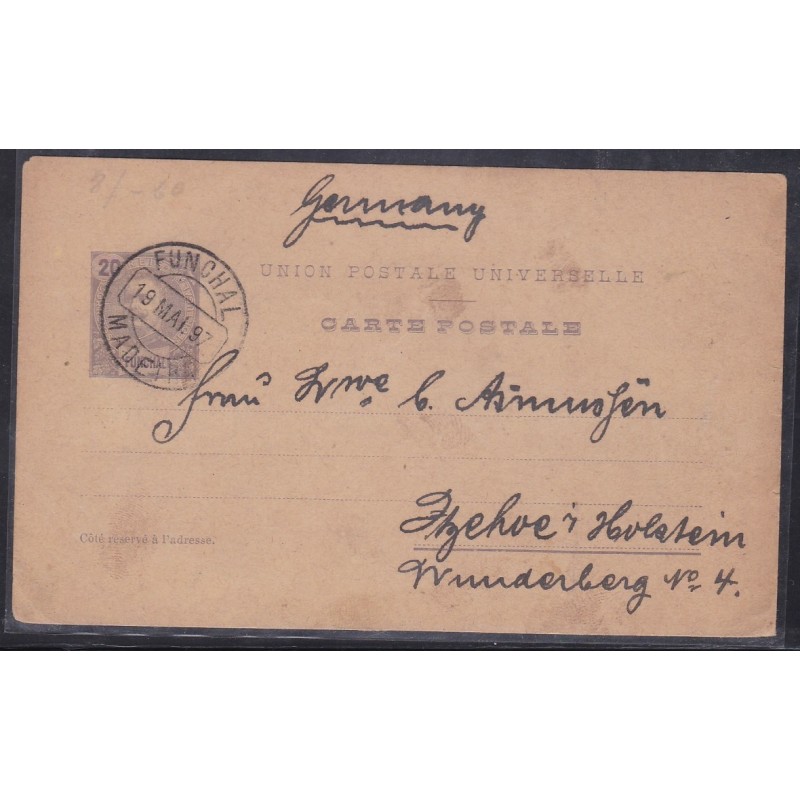 Inteiros Postais nº8 - Camurça escura. Circulado do Funchal para Leipzig Alemanha