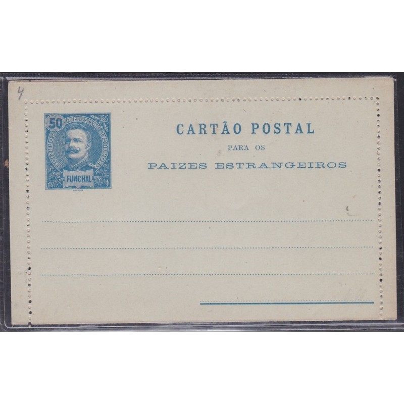 Cartão Inteiro Postal nº4, 50 reís azul (cartolina azul clara).