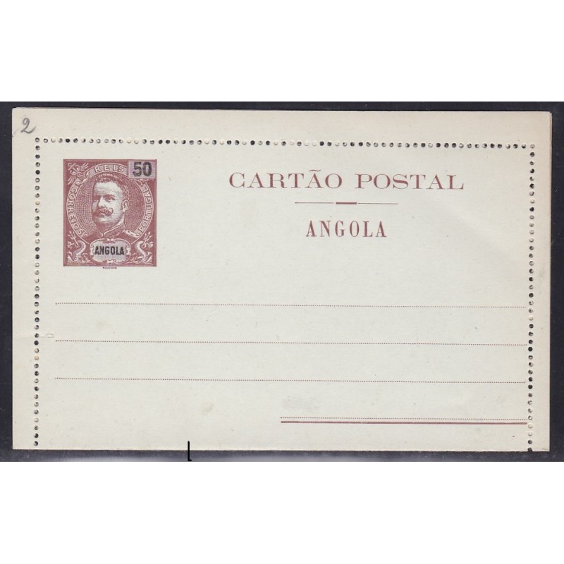 Cartão Inteiro Postal nº2, 50 reís castanho (cartolina azul cinzenta).