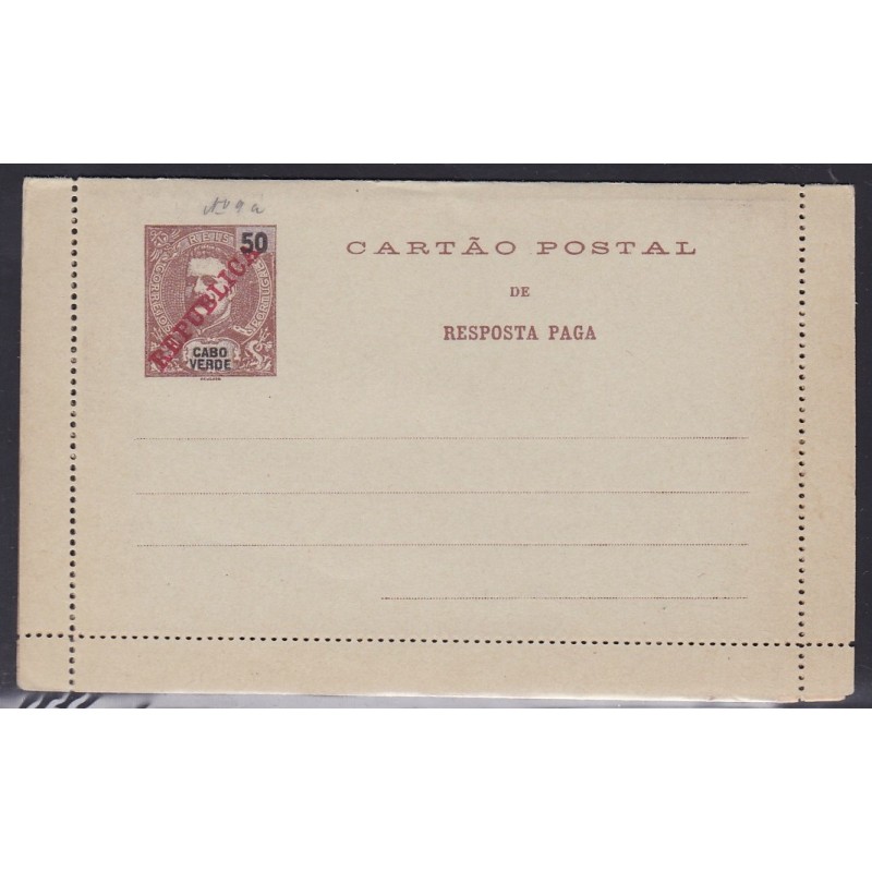 Cartão Inteiro Postal nº9, 50 reís castanho (cartolina azul cinzenta).