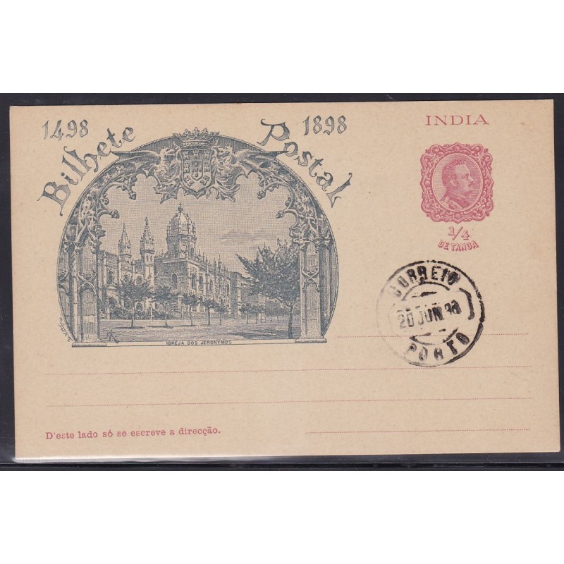 Inteiro Postal nº 8B, 1/4 Tanga - "Igreja dos Jerónimos".