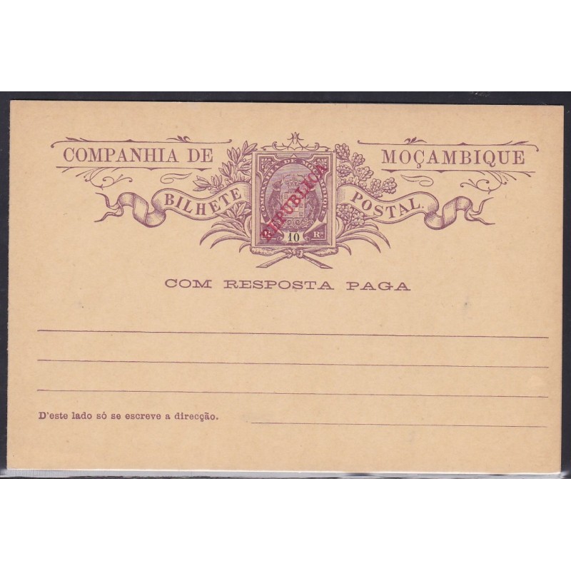 Inteiro Postal nº 24. Cartolina creme. Sobrecarga Vermelho.