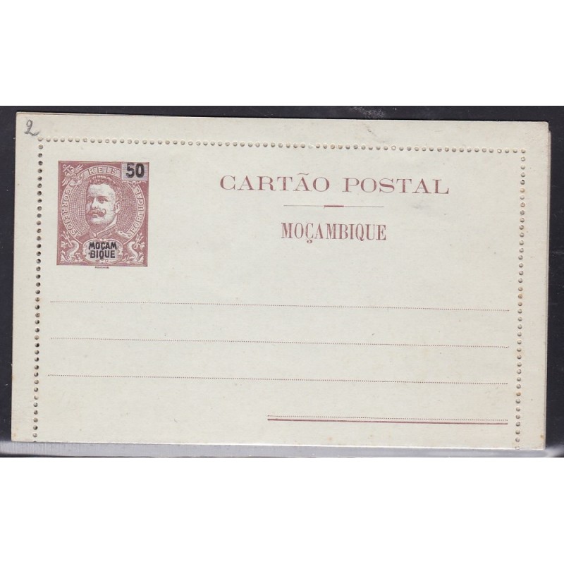 Cartão Inteiro Postal nº2, de 50 Reis Castanho  (cartolina azul cinzenta).