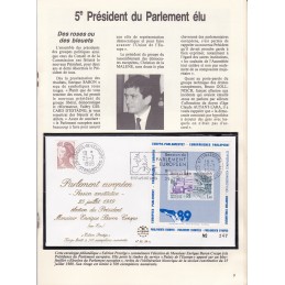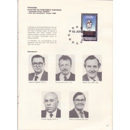 Subscrito e livro Filatélico oficial que mostra a história da composição e funcionamento do parlamento Europeu. Subscrito com selo em lacre.