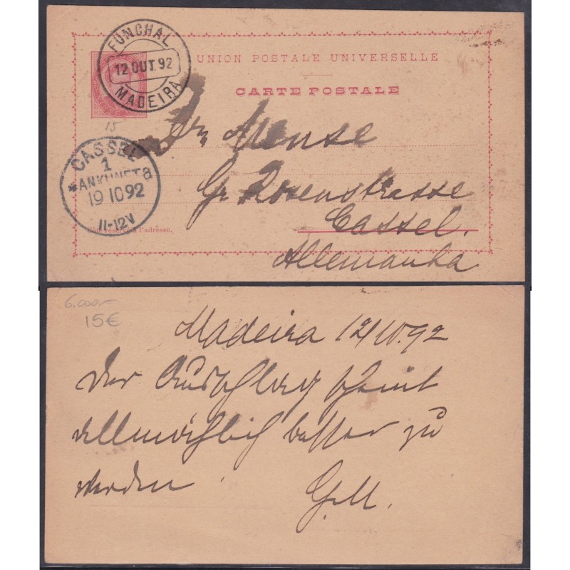 Funchal - Carta circulada em 11 de Outubro de 1892. Exemplar em boas condições.