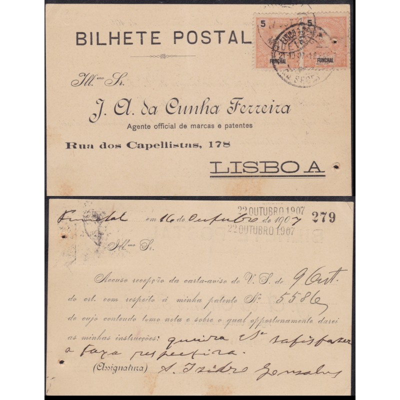 Funchal - Bilhete Postal circulado em 16 de Outubro de 1907. Exemplar em boas condições.