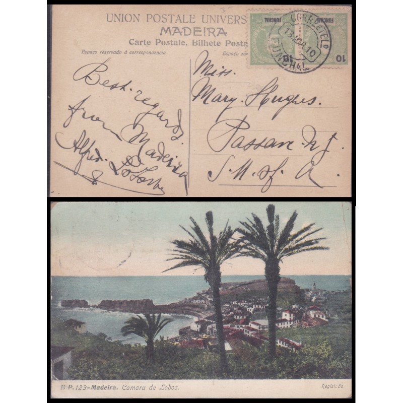 Funchal - Postal circulado em 13 de Março de 1910. Exemplar em boas condições.