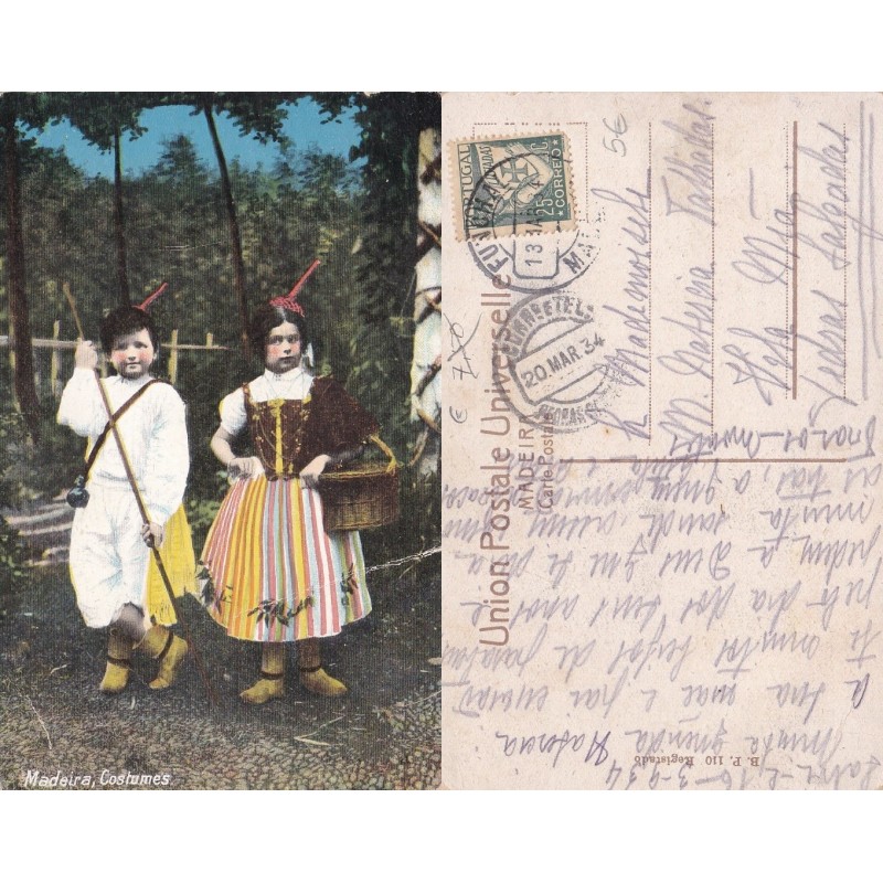 Postal circulado do Funchal para Pedras salgadas