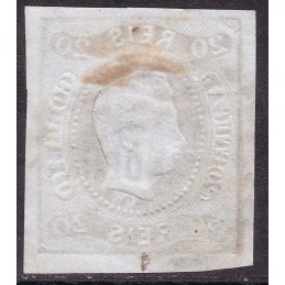 Nº 1 selo 20 réis bistre. Exemplar com cunho estalado 2ª escolha.