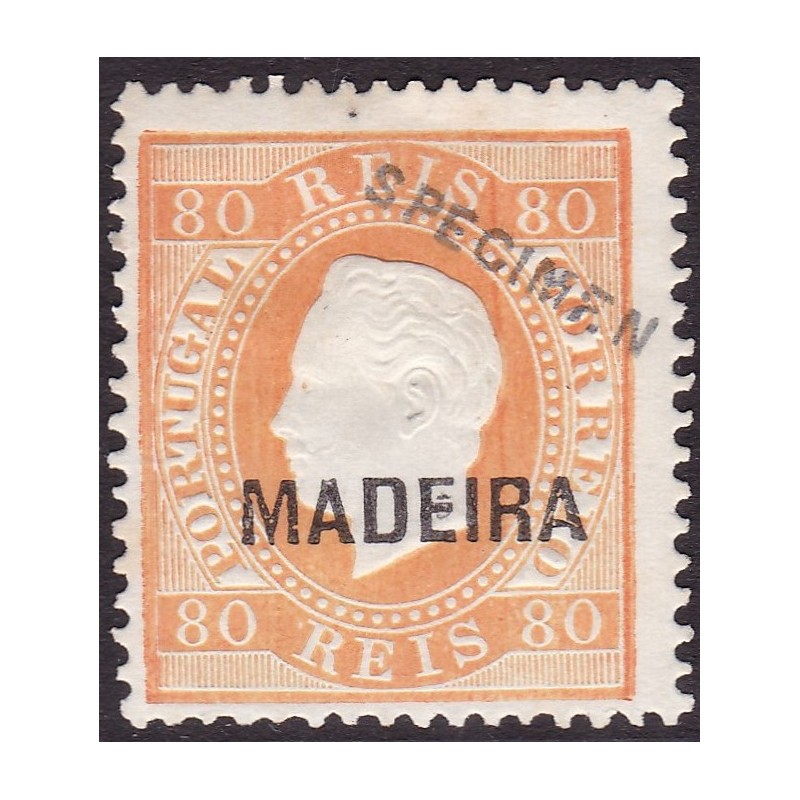Reimpressão de 1885 do selo nº 19 sobrecarga SPECIMEN sem goma. Exemplar em boas condições.