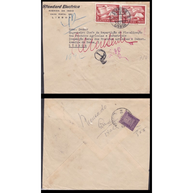 Carta circulada em 24 de Junho de 1963. MULTADA no destino. Exemplar em boas condições.