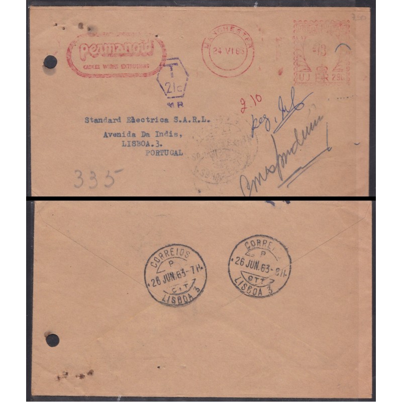 Carta circulada em 24 de Junho de 1963. MULTADA no destino. Exemplar em boas condições.