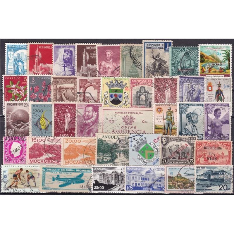Pacote com selos diferentes com alto valor de catálogo, inclui selos das Ilhas. Exemplar de boa qualidade.