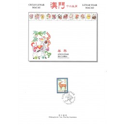 Conjunto de 12 pagelas com selos do bloco nº 33 e respetivo carimbo 1º dia