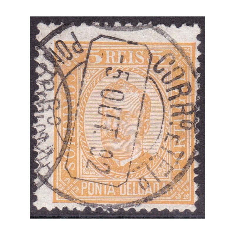 Selo nº 5 carimbo nominal "MRIBEIRA GRANDE" em papel porcelana com denteado 12½ . Exemplar em boas condições.