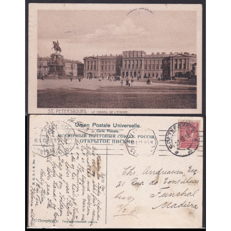 Postal circulado a 28 de Agosto de 1911 e com marca de chegada a 10 de Outubro do mesmo ano. Exemplar em boas condições.