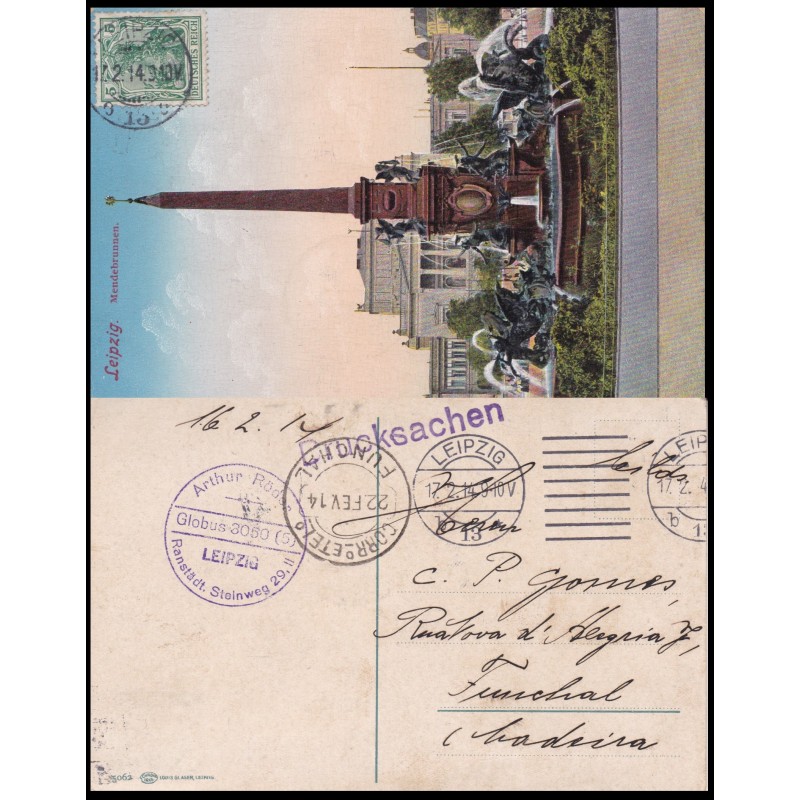 Postal circulado a 17 de Fevereiro de 1914 e marca de chegada 22 de Fevereiro de 1914. Exemplar em boas condições.