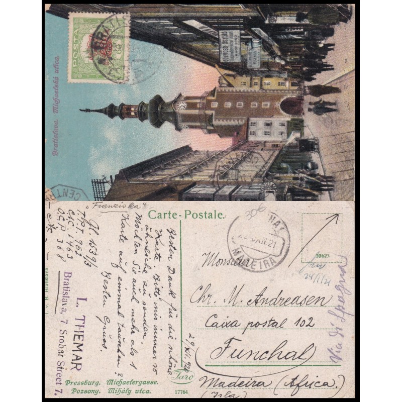 Postal circulado a 19 de Janeiro de 1921 e com marca de chegada a 8 de Fevereiro do mesmo ano. Exemplar em boas condições.