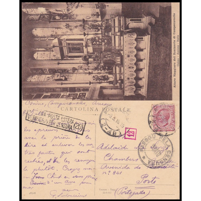 Postal Censurado circulado a 17 de Fevereiro de 1917 e marca de chegada a 22 de Fevereiro do mesmo ano. Exemplar em boas condições.
