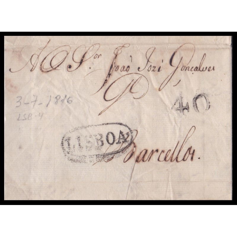 Carta circulada a 2 de Julho de 1816 com marca LSB-4 a preto. Exemplar em boas condições.
