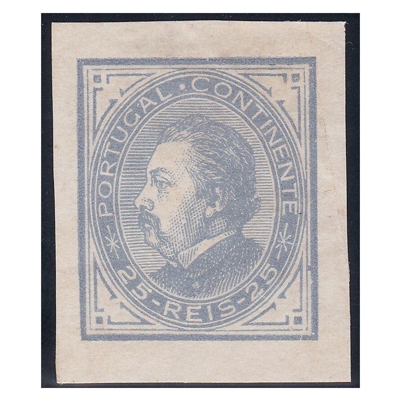 Prova final do selo 25 reis cinzento não denteada. Exemplar em boas condições.