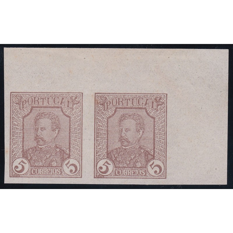Escola Gravura Tipo II do selo de 5 Reis castanho em canto de folha, desenho não aprovado