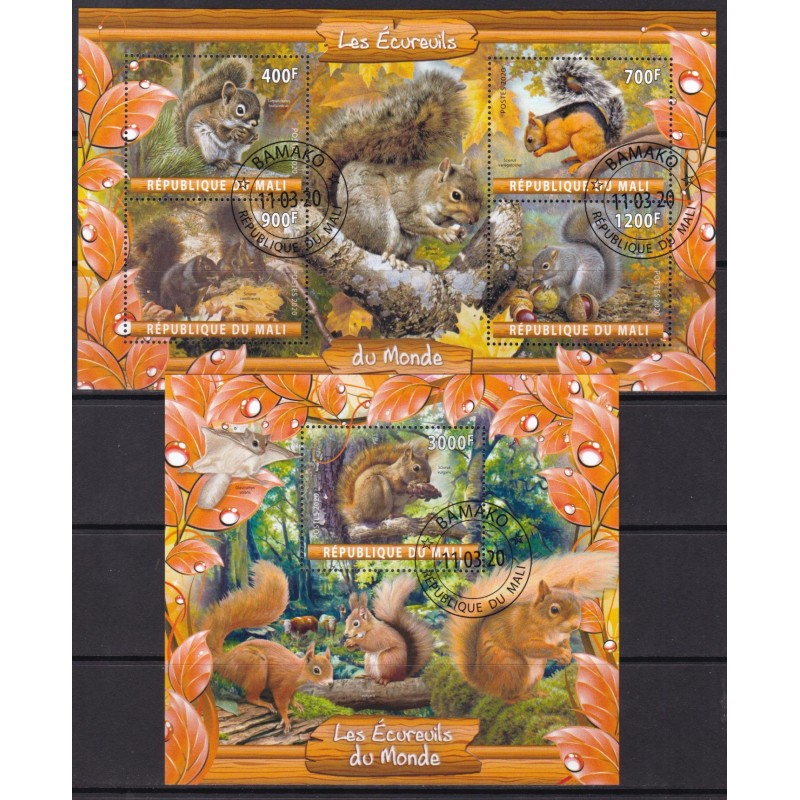 Esquilos - Folha e bloco usados. Exemplar em boas condições