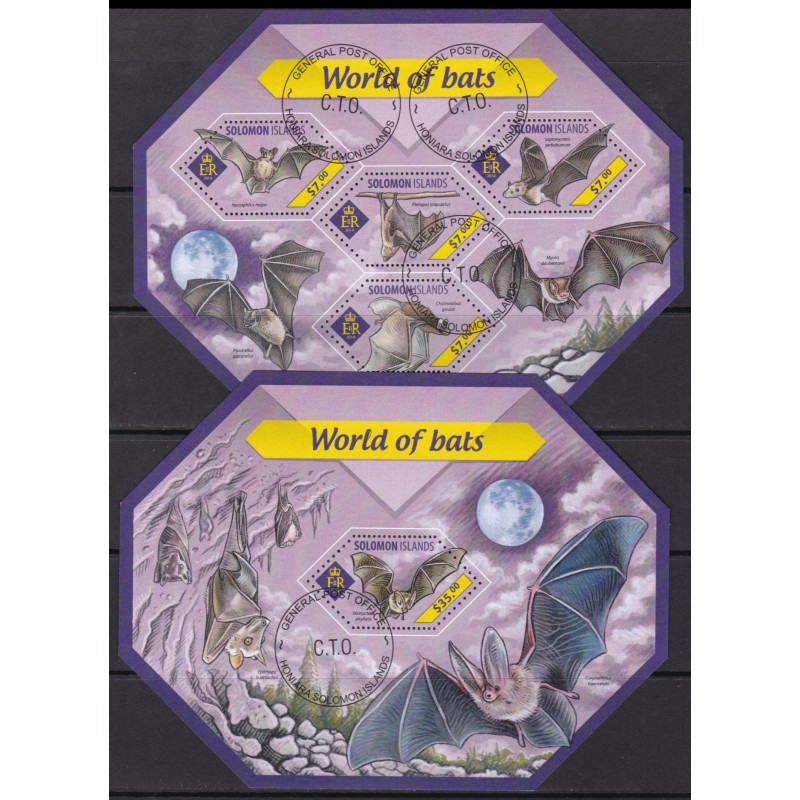 Morcegos - Folha e bloco usados. Exemplar em boas condições