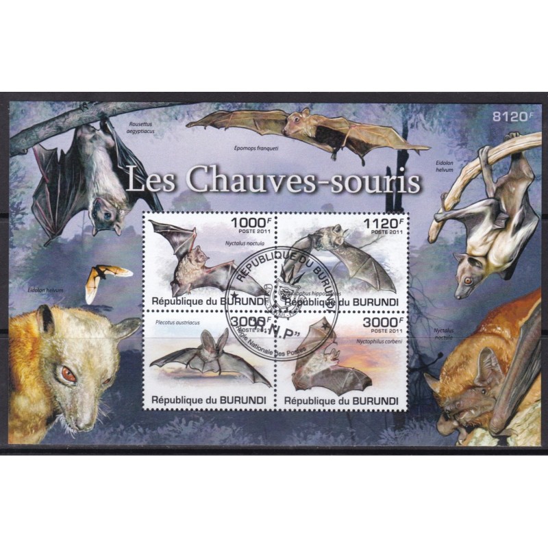 Morcegos - Folha e bloco usados. Exemplar em boas condições