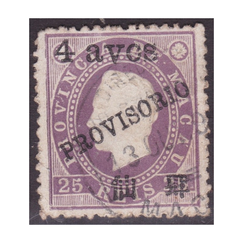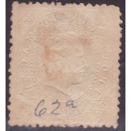 Selo usado nº 62 violeta castanho denteado 12½. Exemplar com falta de um canto superior.