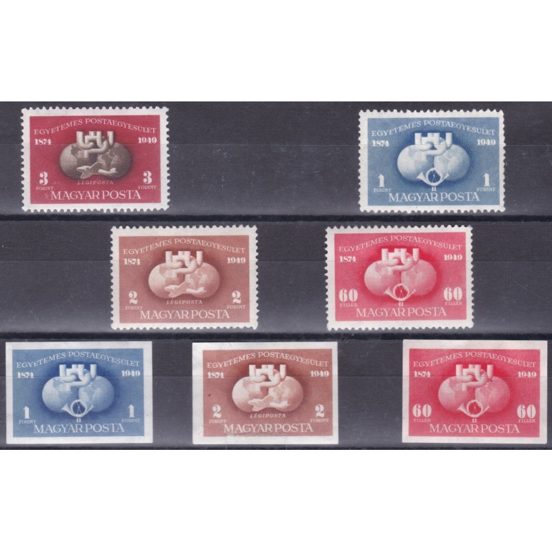 Serie nº 916/17 e C.A. 90/90A sem goma, falta selo de 3 Forint.. Exemplar em boas condições.