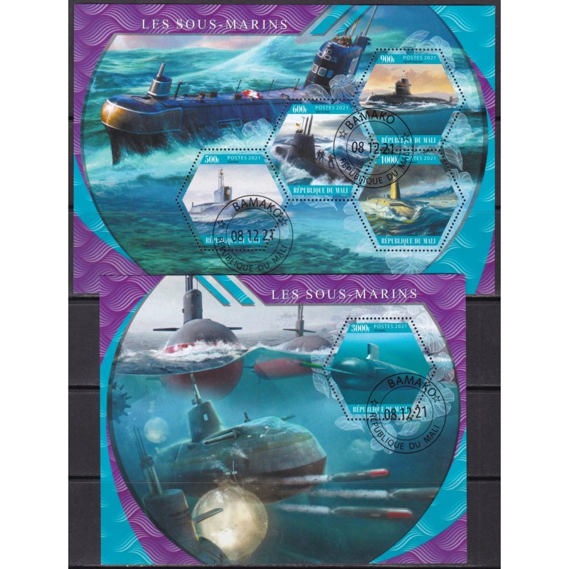 Submarino - Folha e bloco usados. Exemplar em boas condições.