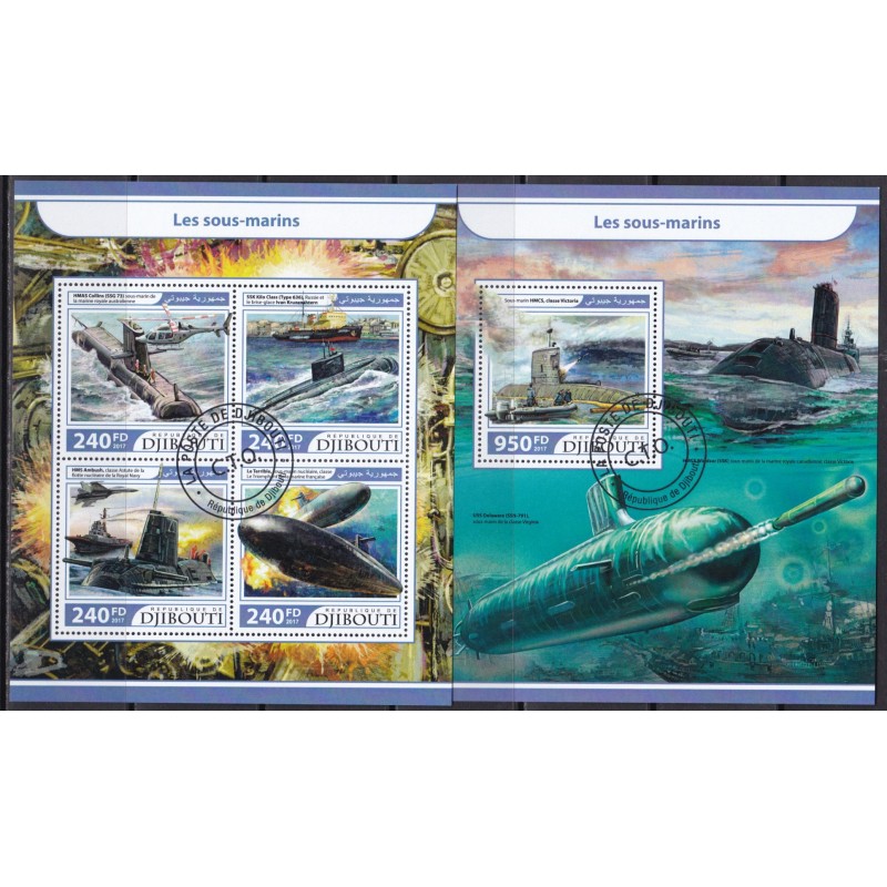 Submarino - Folha e bloco usados. Exemplar em boas condições.